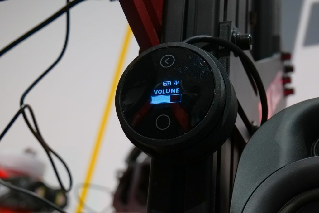 Ensuite, on peut contrôler l’Arena 9 grâce à un petit écran tactile, muni d’une molette. La molette règle le volume. Au tout début, il est un peu déroutant, mais on s’y retrouve très vite. Concrètement : le bouton pour couper le son est accessible tout le temps, et je navigue souvent dans les menus pour ajuster l’equalizer (on en reparle plus loin). On peut aussi ajuster la balance, même si le driver Steelseries propose un peu plus de finesse ici.
