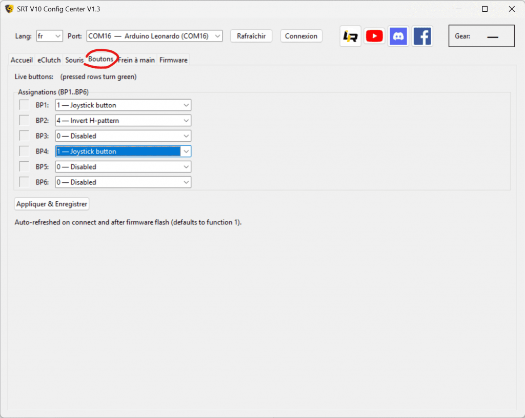 Le mod “button plate” permet d’entourer le levier de vitesses de 1 à 6 boutons. On peut associer à chaque bouton de nombreuses fonctions (boutons simples, touches claviers, encodeurs…)